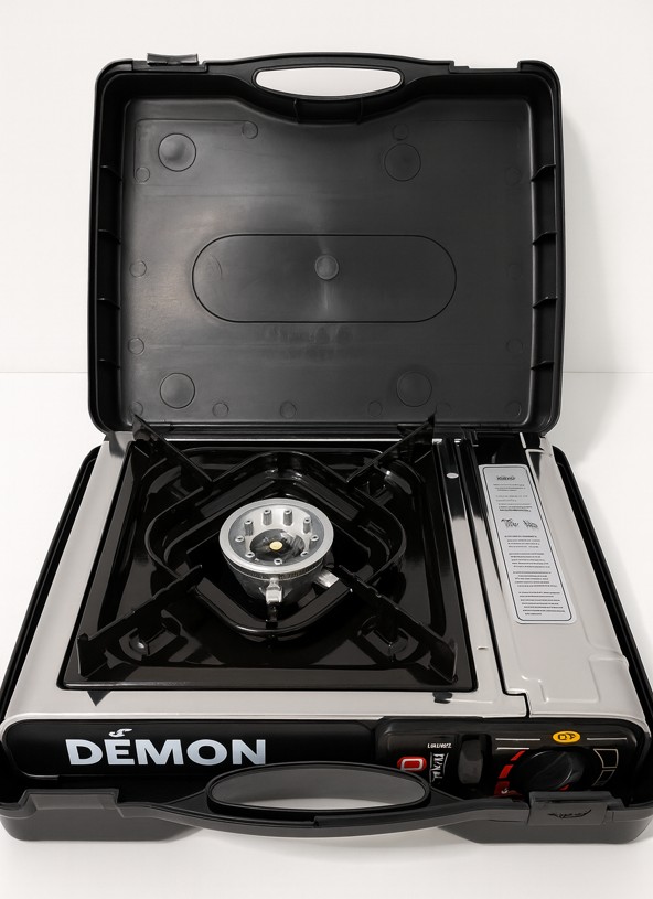 O fogão a gás de cartucho com queimador único é a solução prática e eficiente para campismo, piqueniques, campervans e cozinhas portáteis. Equipado com queimador de alumínio resistente e ignição piezoelétrica, permite um acendimento rápido, seguro e sem fósforos.